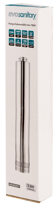 Description:Submersible Centrifugal Pump 750W, Stainless Steel, 6 Turbines, Control Panel, Bottom Suction EvoSanitary®.