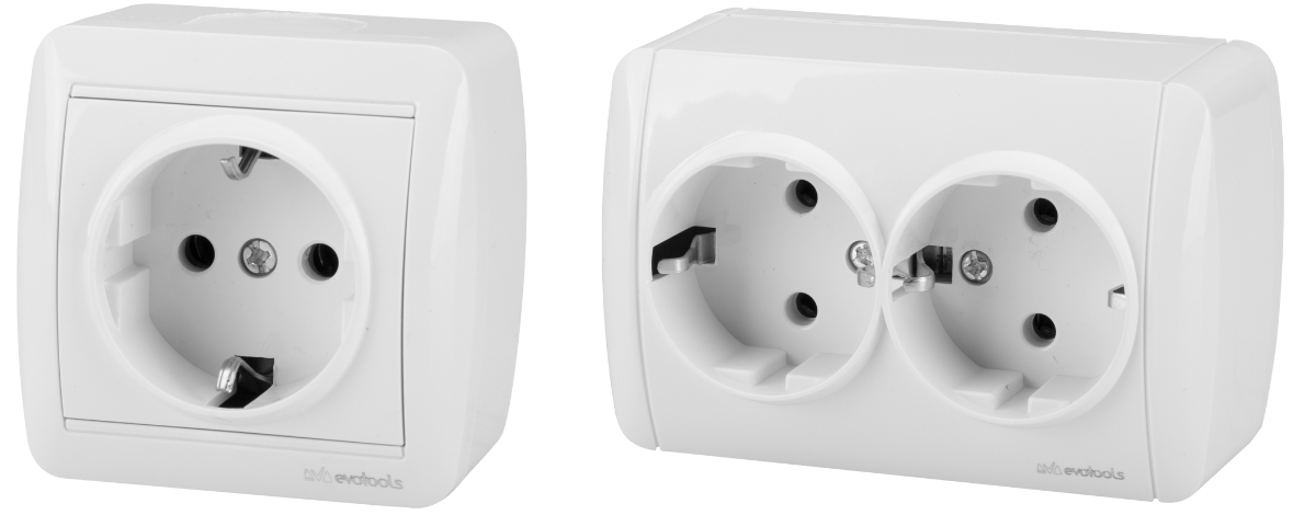 The EvoTools® Professional brand represents a range of tools intended for DIYers, offering superior quality that makes them suitable for semi-professional use. Both single and double sockets are essential in a building’s electrical infrastructure and are widely used in homes, offices, hotels and other commercial spaces. They are designed to meet electrical safety standards and can be equipped with additional features such as surge protection or integrated switches; the maximum voltage is 250 V 16 A.